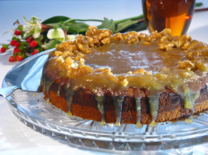 - Add walnuts. Pour on top of cooled cheesecake portions.