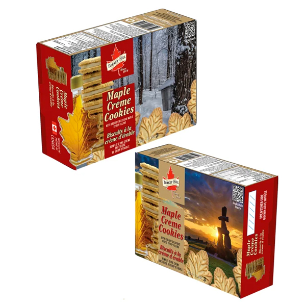 Consumed as they are right out of the box. Maple cream cookies made with real maple syrup in three different boxes. Maple bush/Inukshuk box, polar bear/whale box and RCMP Mountie Musical Ride box. 18 cookies per box.