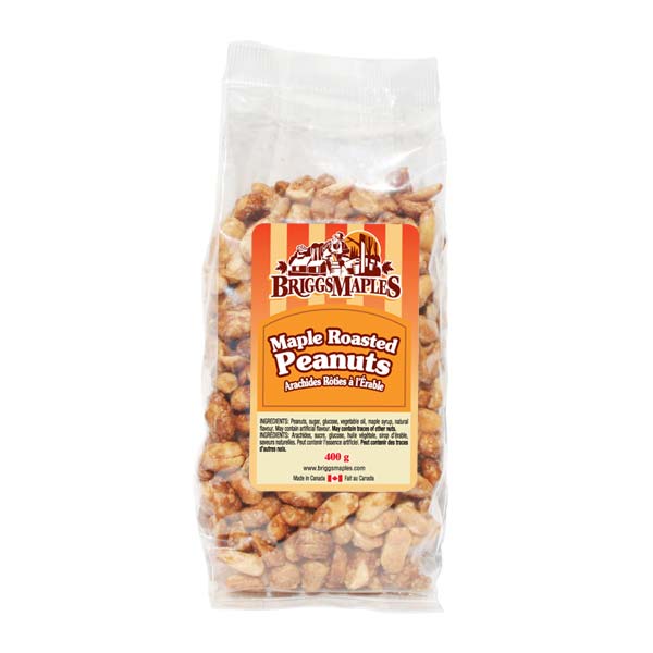 Ingredients: Peanuts, sugar, glucose, vegetable oil, pure maple syrup, natural flavour. May contain artificial flavour. May contain traces of other nuts.