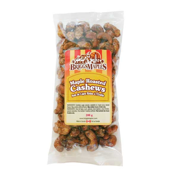 Ingredients: Cashews, sugar, glucose, vegetable oil, pure maple syrup, natural flavour. May contain artificial flavour. May contain traces of other nuts.
